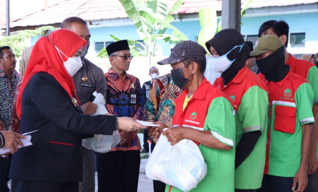 BANDAR LAMPUNG – Sebanyak 750 petugas kebersihan Dinas Lingkungan Hidup (DLH) Kota Bandar Lampung menerima santuan uang tunai dan beras dari Badan Amil Zakat Nasional (BAZNAS).