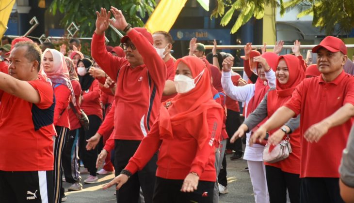 Kegiatan Senam yang diikuti Wali Kota Bandar Lampung Eva Dwiana dan jajaran OPD serta Aparatur Kecamatan, dilaksanakan dalam memperingati HUT ke 341 Kota Bandar Lampung.