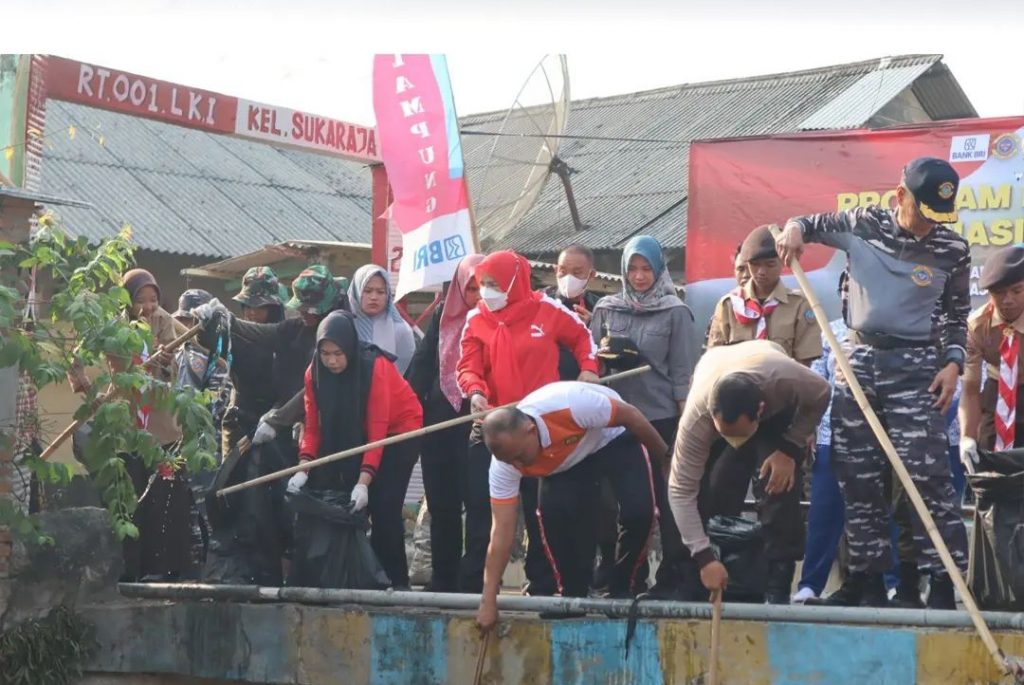 “gerebek sungai program rutin Pemkot Bandarlampung yang dilakukan setiap Jumat di seluruh kelurahan yang ada di Bandarlampung. Saat ini Alhamdulillah Lanal Lampung peduli dengan masyarakat, dengan membantu membersihkan sungai atau kali ini,” ujarnya.